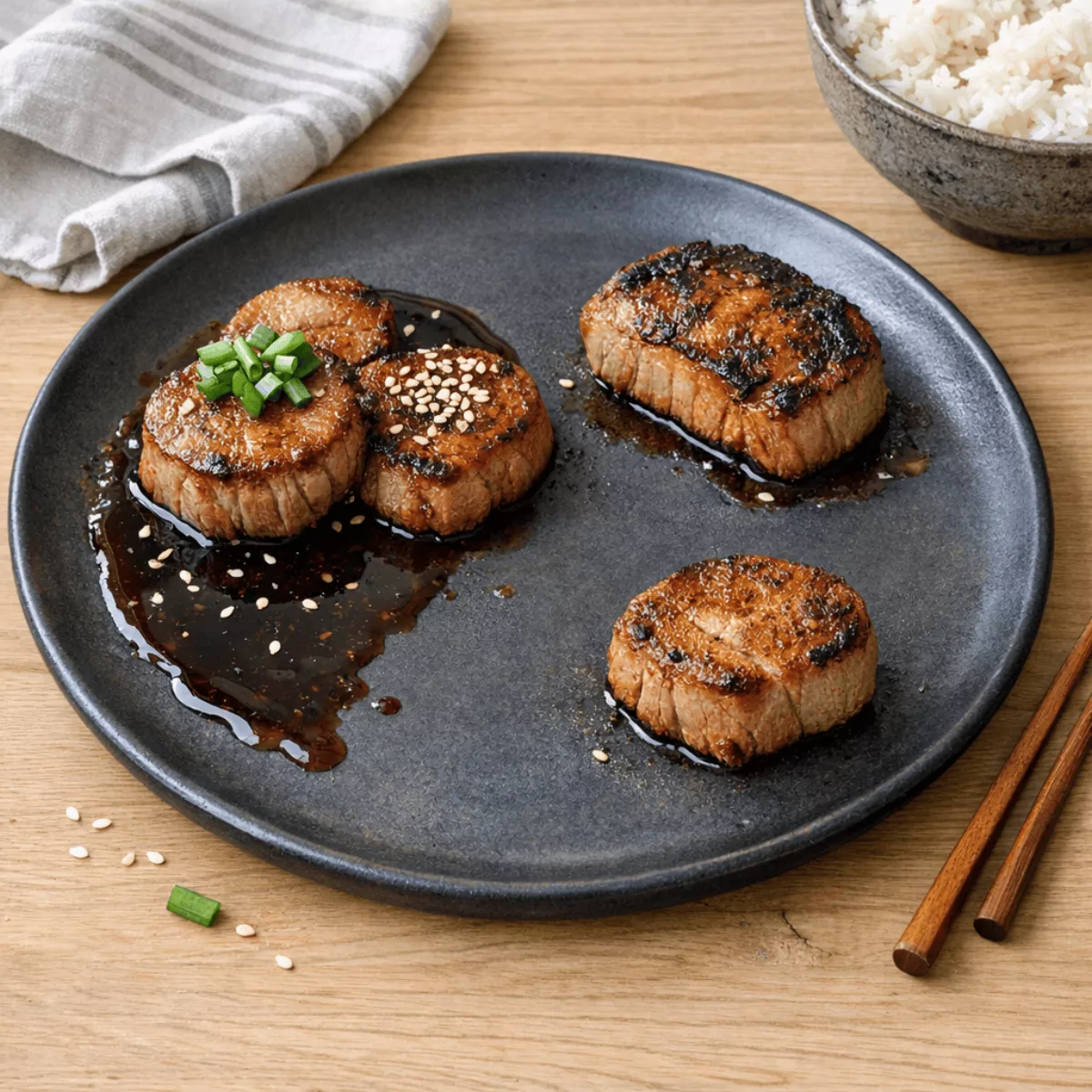 Медальоны из свиной вырезки в соусе терияки