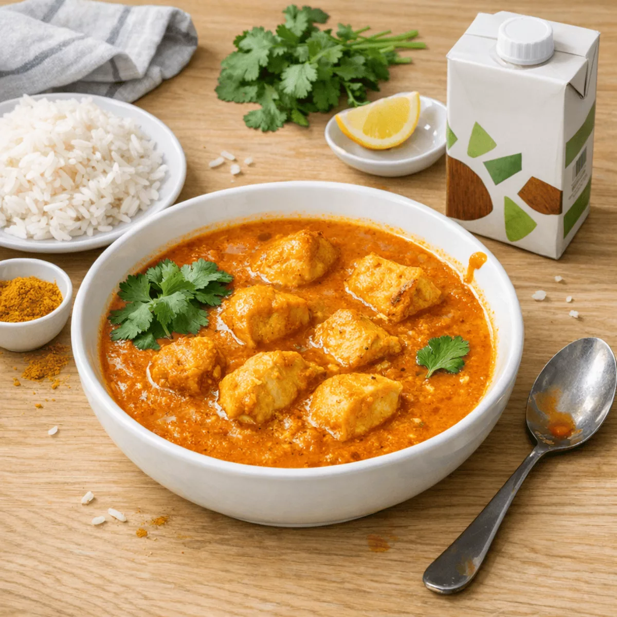 Подавайте карри в глубокой тарелке рядом с рассыпчатым рисом, украсив листиками свежей кинзы (если используете). ──────────────────────────────