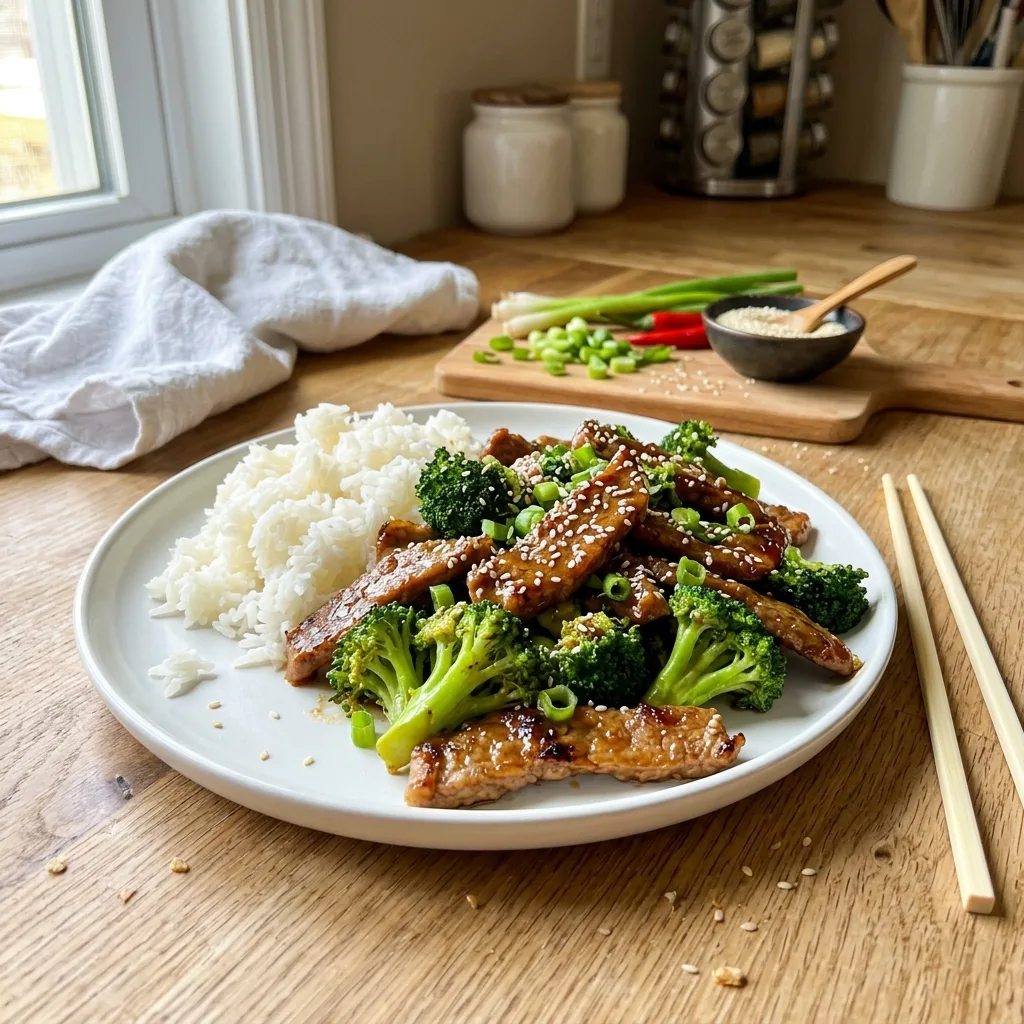 Подавайте сразу — стир-фрай вкуснее всего с пылу с жару, пока брокколи хрустит, а соус блестит.