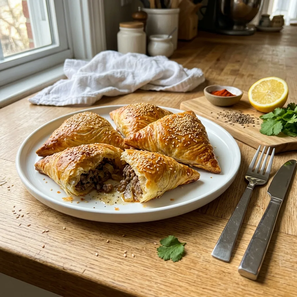 Самса с мясом из слоёного теста в духовке