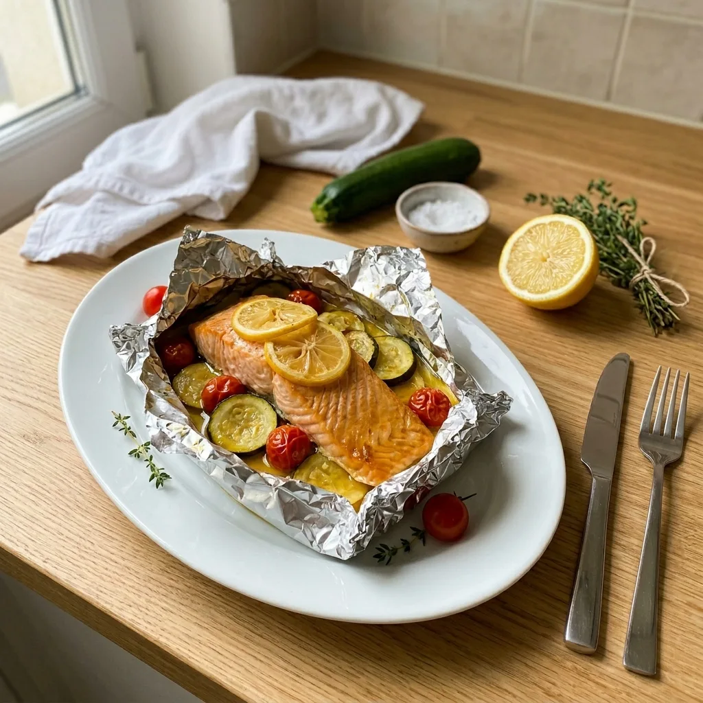 Рыба в фольге с овощами в духовке — французский рецепт «ан папийот» с лососем и цукини