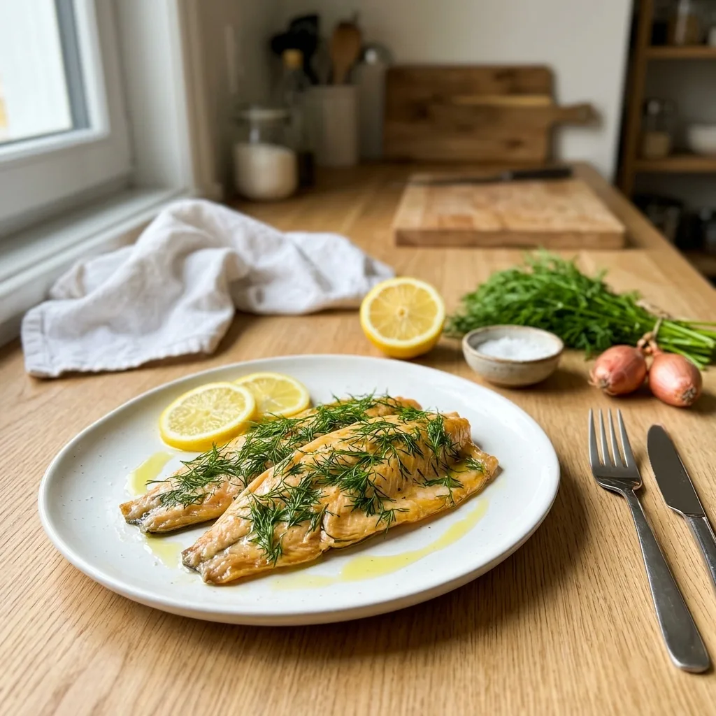 Аккуратно переложите готовое филе на тарелки, полейте оливковым маслом и сразу подавайте — форель на пару теряет сочность при ожидании.