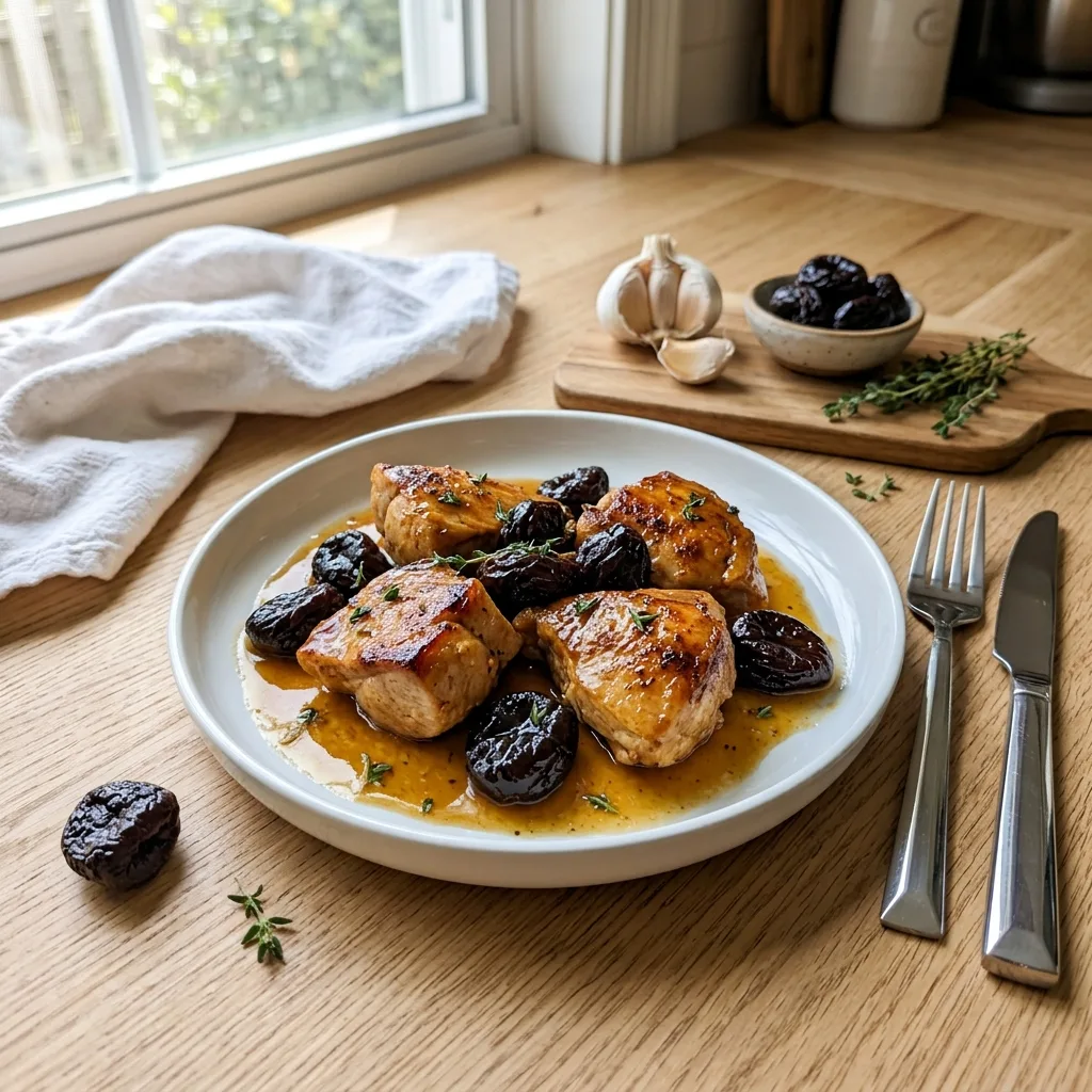 Индейка, тушёная с черносливом и красным вином — классический рецепт в стиле французской кухни