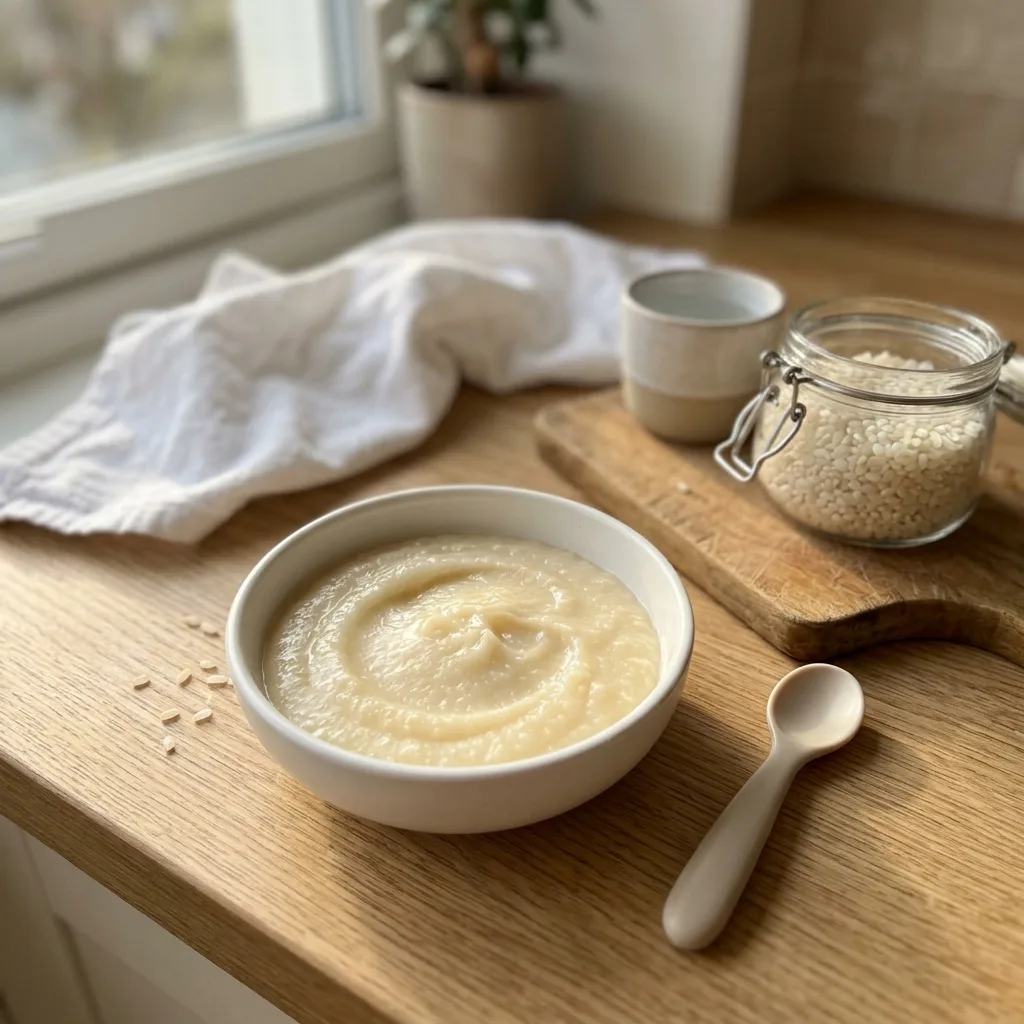 Остудите кашу до температуры тела (~37°C) — проверьте, капнув каплю на внутреннюю сторону запястья: должно быть едва тёплым, не горячим.