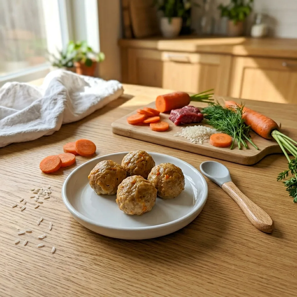 Смочите руки холодной водой и сформируйте фрикадельки диаметром 2–2,5 см (~18–22 г каждая) — такой размер безопасен для малыша и обеспечивает равномерную пропарку за 20–25 минут.