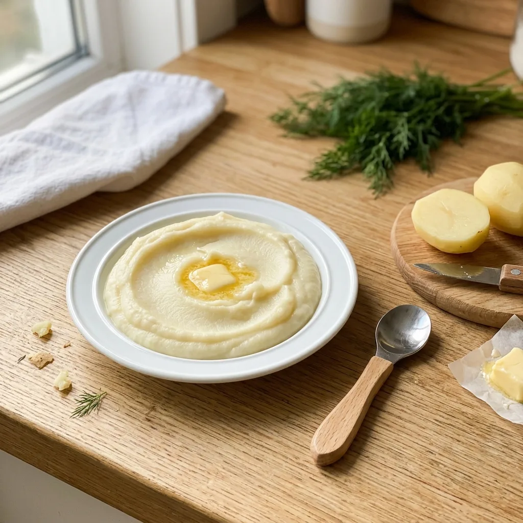Добавьте минимальную щепотку соли (~0,2 г), если используете, и аккуратно перемешайте. Остудите пюре до температуры ~37°C и подавайте сразу.