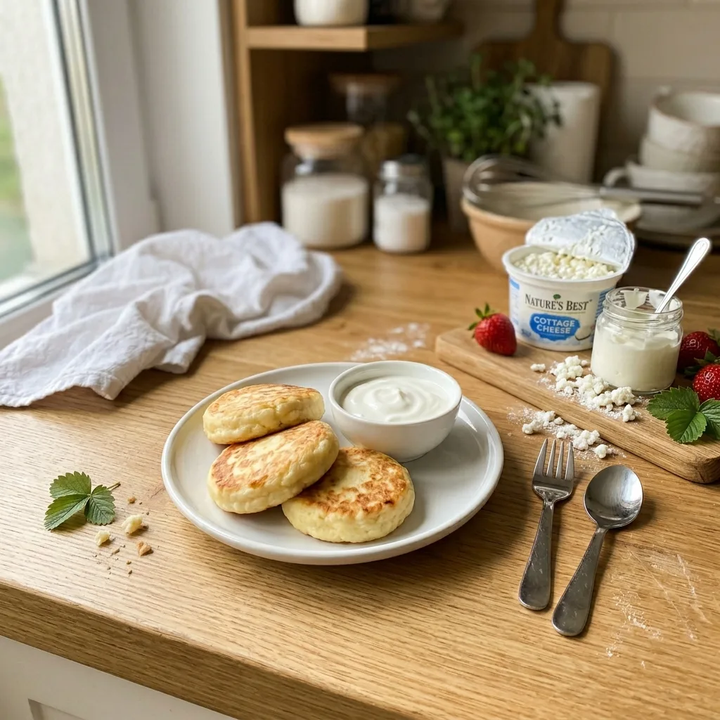 Если творог зернистый — протрите его через мелкое сито или пробейте погружным блендером 20–30 секунд до однородной гладкой массы.