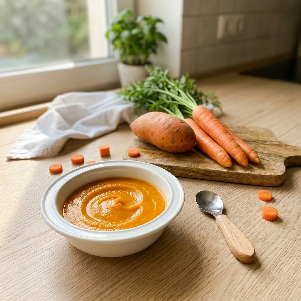 Остудите суп-пюре до тёплого состояния (~50–55°C) и подавайте малышу.