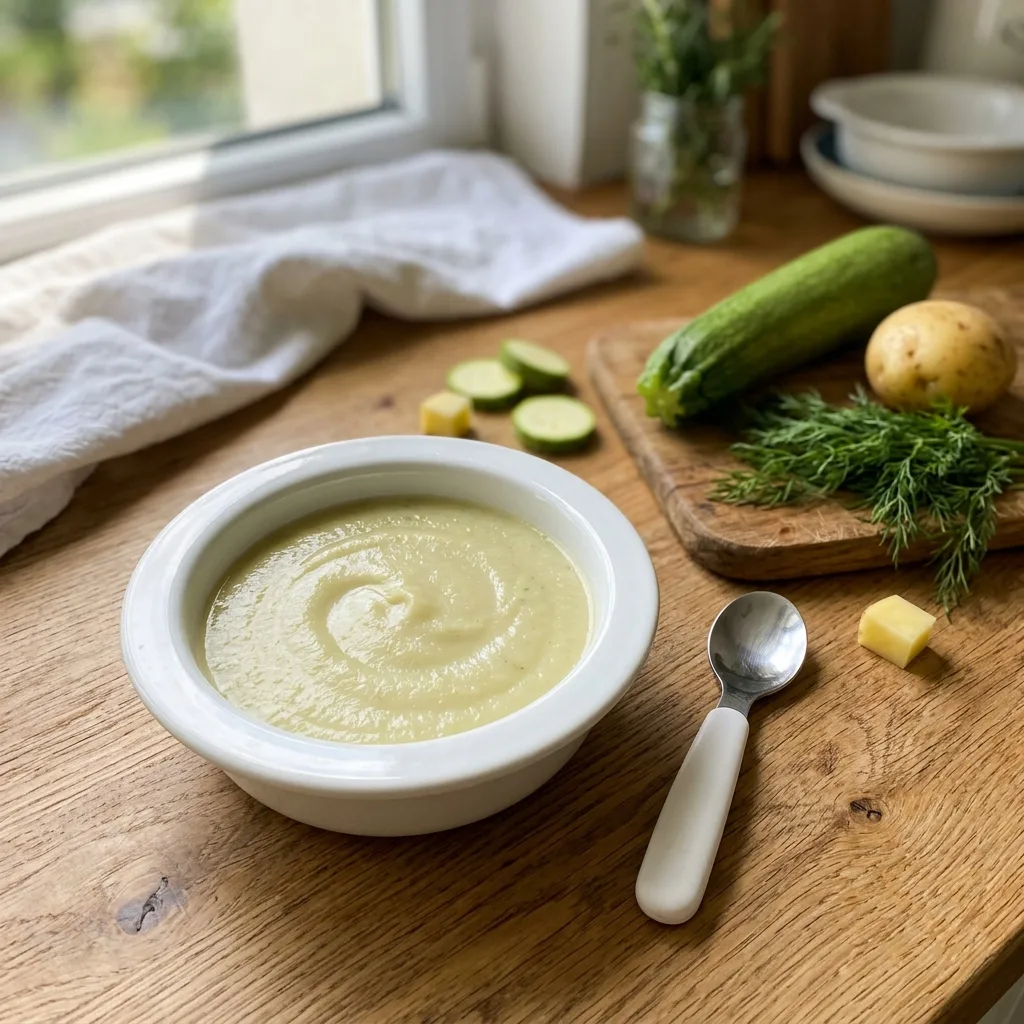 Доведите до кипения на среднем огне, затем убавьте до минимального. Варите под крышкой 20–22 минуты — до полного размягчения картофеля и кабачка.