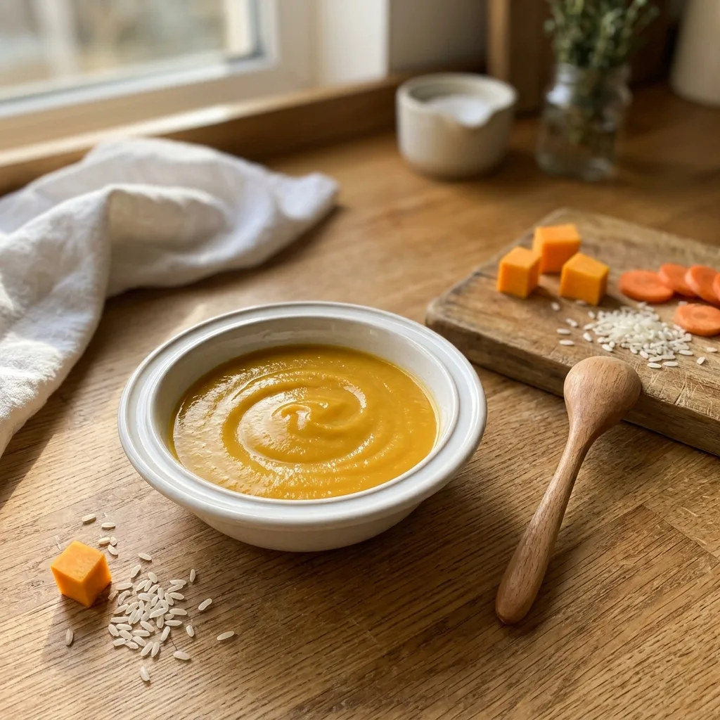 Проверьте готовность: тыква должна легко протыкаться вилкой и распадаться при нажатии, рис — полностью разварен и мягкий. Снимите кастрюлю с огня.