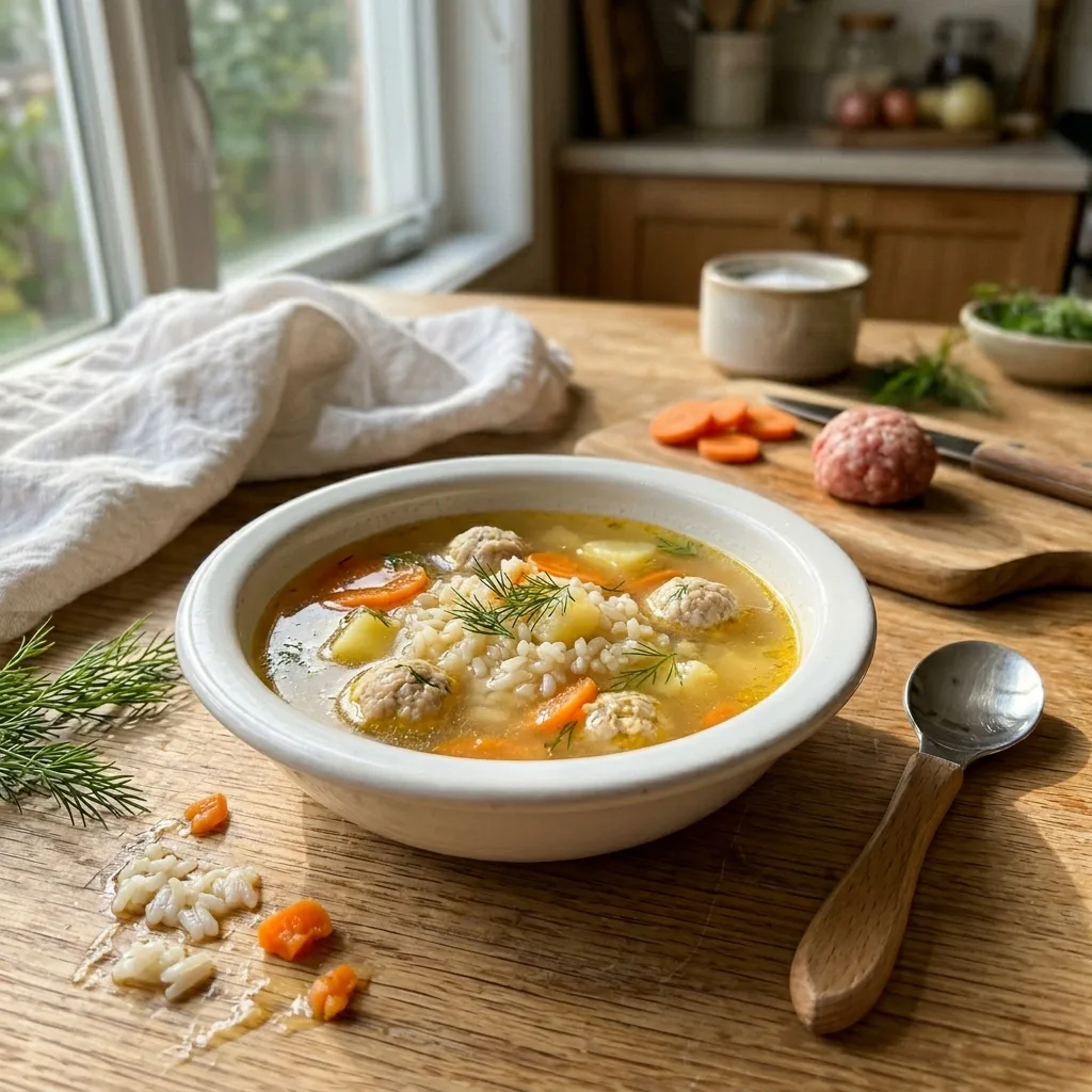 Суп с фрикадельками из телятины и рисом для малышей 1–2 лет