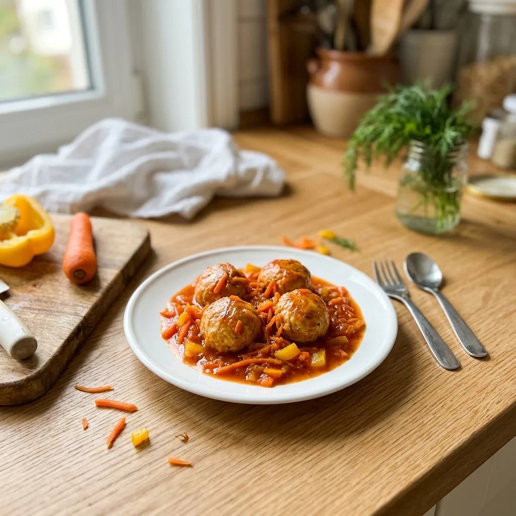 Фрикадельки из курицы в томатно-овощном соусе