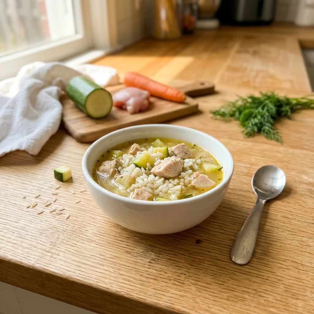 Добавьте кубики кабачка, аккуратно перемешайте и тушите ещё 10 минут под крышкой на минимальном огне — кабачок должен стать мягким, но сохранить форму. Проверьте готовность курицы: внутренняя температура — 74°C, мясо при разрезании однородно белое без розового.