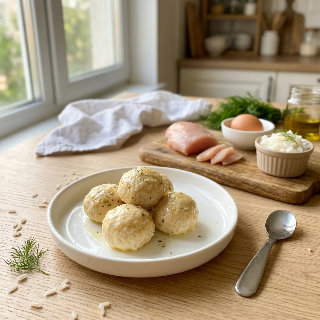 Достаньте кнели из пароварки, остудите порцию малыша до температуры тела (~37°C), проверьте на запястье и подавайте сразу.
